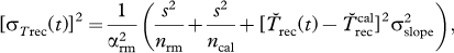 is the mean reconstructed temperature over the calibration period of the length ncal, σslope represents the standard error of the slope estimated from regressing the scaled annual mean δ18O on instrumental DJF SAT and