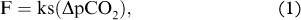The most direct method to estimate the uptake of atmospheric CO2 by the oceans is by determining the air–sea flux from values of the pCO2 in the sea surface and the overlying atmosphere. The net sea–air CO2 exchange flux (F, mmol m−2 d−1) is calculated using the formula: