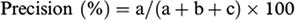 Since how well the CDR estimates an ice event correctly is more critical and its occurrences are substantially less frequent than the no-ice occurrences, an alternative parameter, precision, is a more useful indicator of skill. Precision, sometimes referred to as threat score or critical success index, is defined as the percentage of correct ice occurrences over the total number of ice event occurrences including false ice and no-ice counts and is computed as: