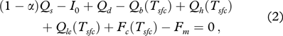 where α is the albedo, Qs is the incoming shortwave solar radiation at the surface and I0 is the net shortwave radiation that penetrates the snow or bare ice, contributing to internal heating of the snow and ice. Qd and Qb are the incoming and outgoing longwave radiation. Qh and Qle are the sensible and latent heat flux. Fc is the surface conductive heat flux, and Fm is the heat used for surface melting. All fluxes are positive towards the snow or ice surface. The penetration of solar radiation into snow and ice is considered so subsurface snow melting can be quantitatively calculated (Cheng et al. 2003).