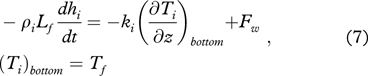 At the ice bottom, the ice temperature is kept at freezing point (Tf) in the model, and the heat is used to grow or melt the ice:
