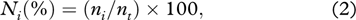 where ni represents the total number of prey type i, and nt represents the total number of prey sampled in all stomachs.
