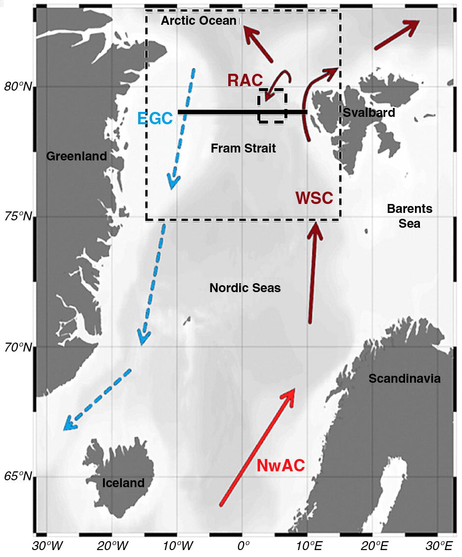 Beszczynska-Möller A., Fahrbach E., Schauer U. & Hansen E. 2012. Variability in Atlantic water temperature and transport at the entrance to the Arctic Ocean, 1997–2010. ICES Journal of Marine Science 69, 852–863. Publisher Full Text