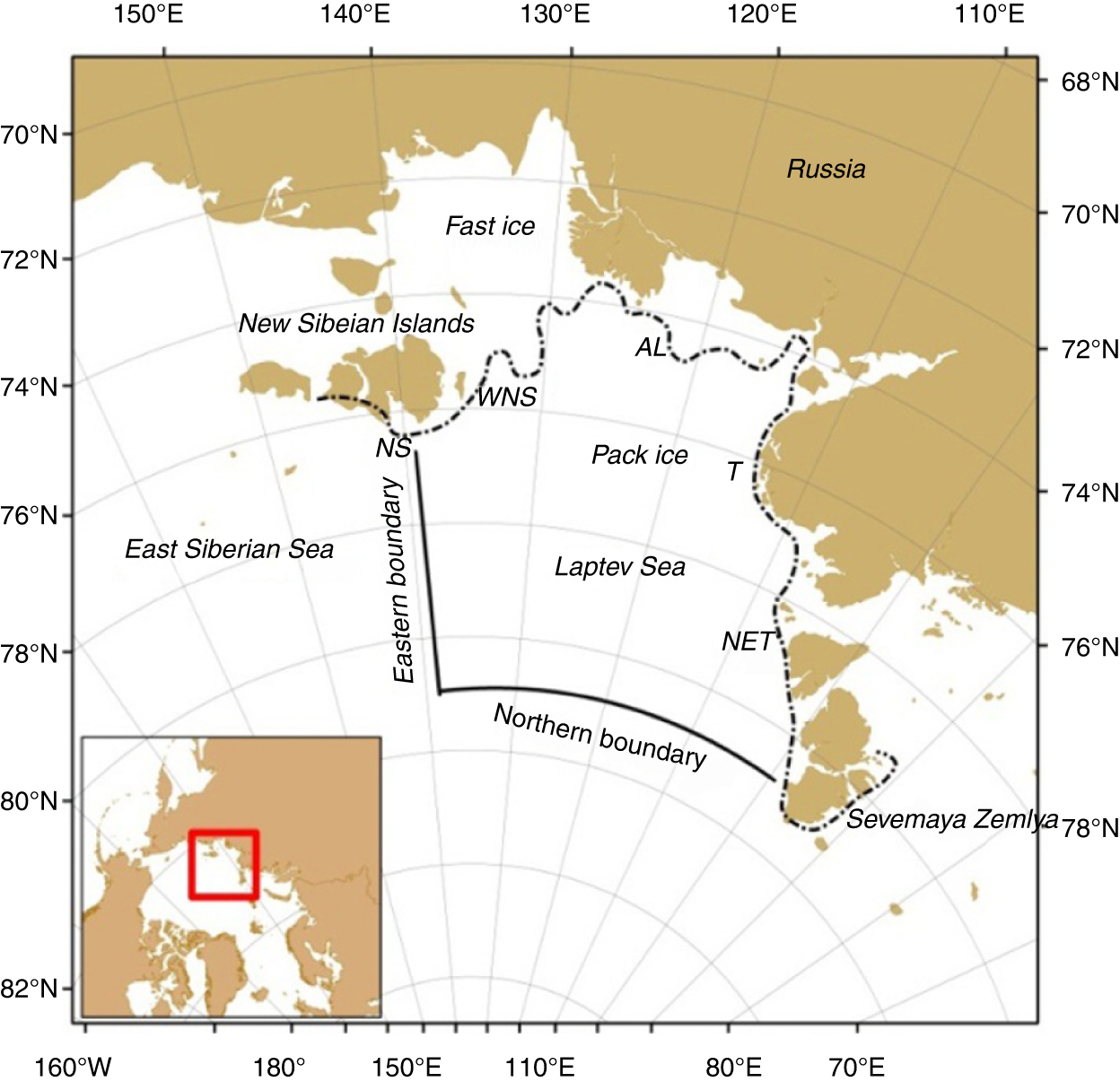 NB: northern boundary of the Laptev Sea