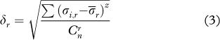 Here, σ represents the CV, and {Aj}, in which j=1,.., r, is a combination when r is the number of degrees of freedom and