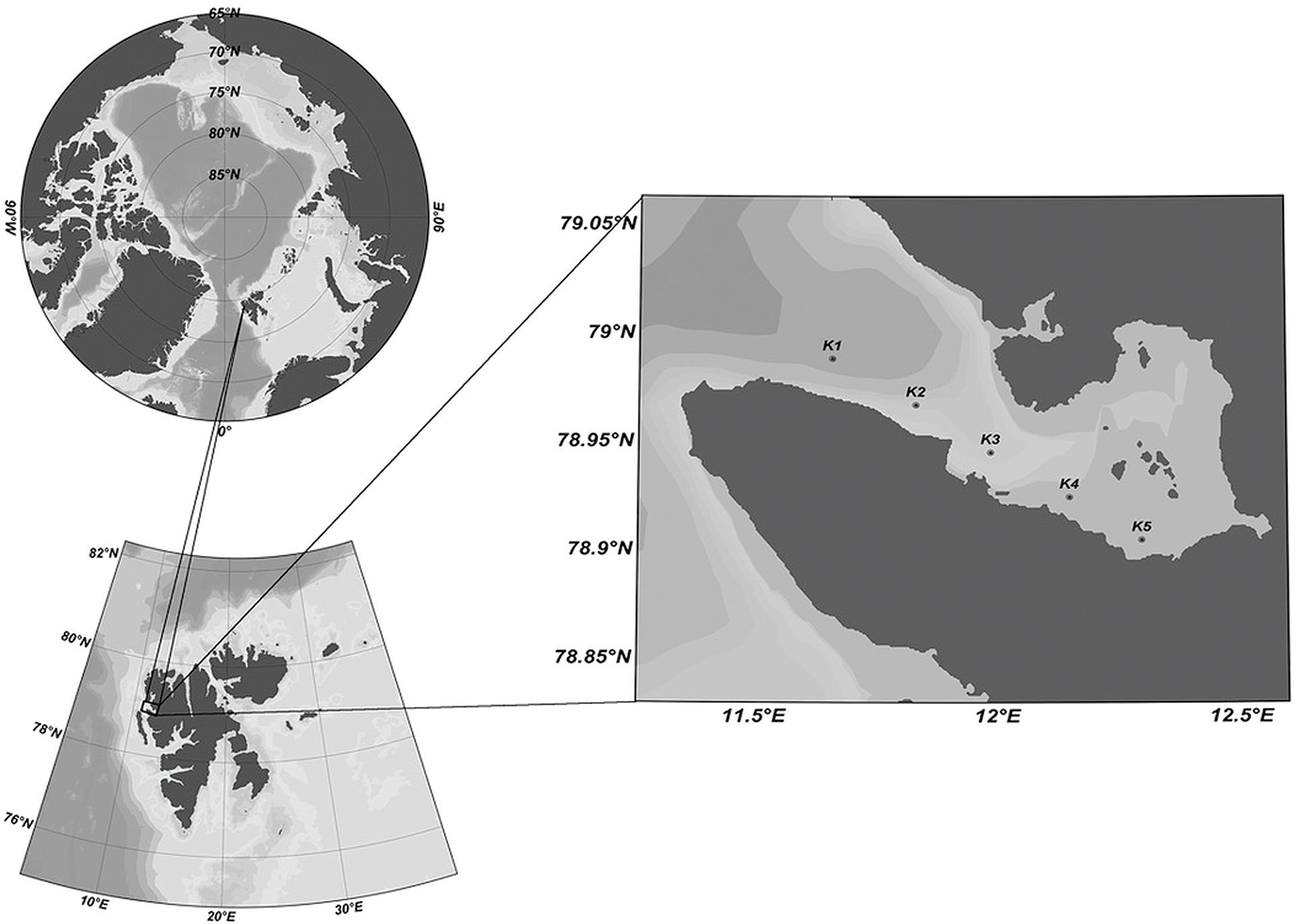 Hop H., Falk-Petersen S., Svendsen H., Kwasniewski S., Pavlov V., Pavlova O. & Søreide J.E. 2006. Physical and biological characteristics of the pelagic system across Fram Strait to Kongsfjorden. Progress in Oceanography 71, 182–231, http://dx.doi.org/10.1016/j.pocean.2006.09.007.