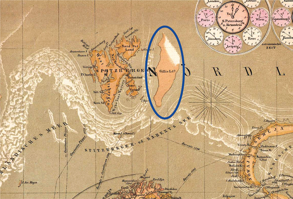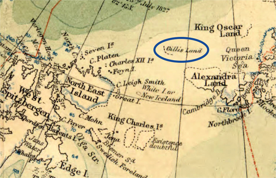 Fig. 6 Detail of Von Payer’s map (1876) with the location of “Gillis Land” circled.