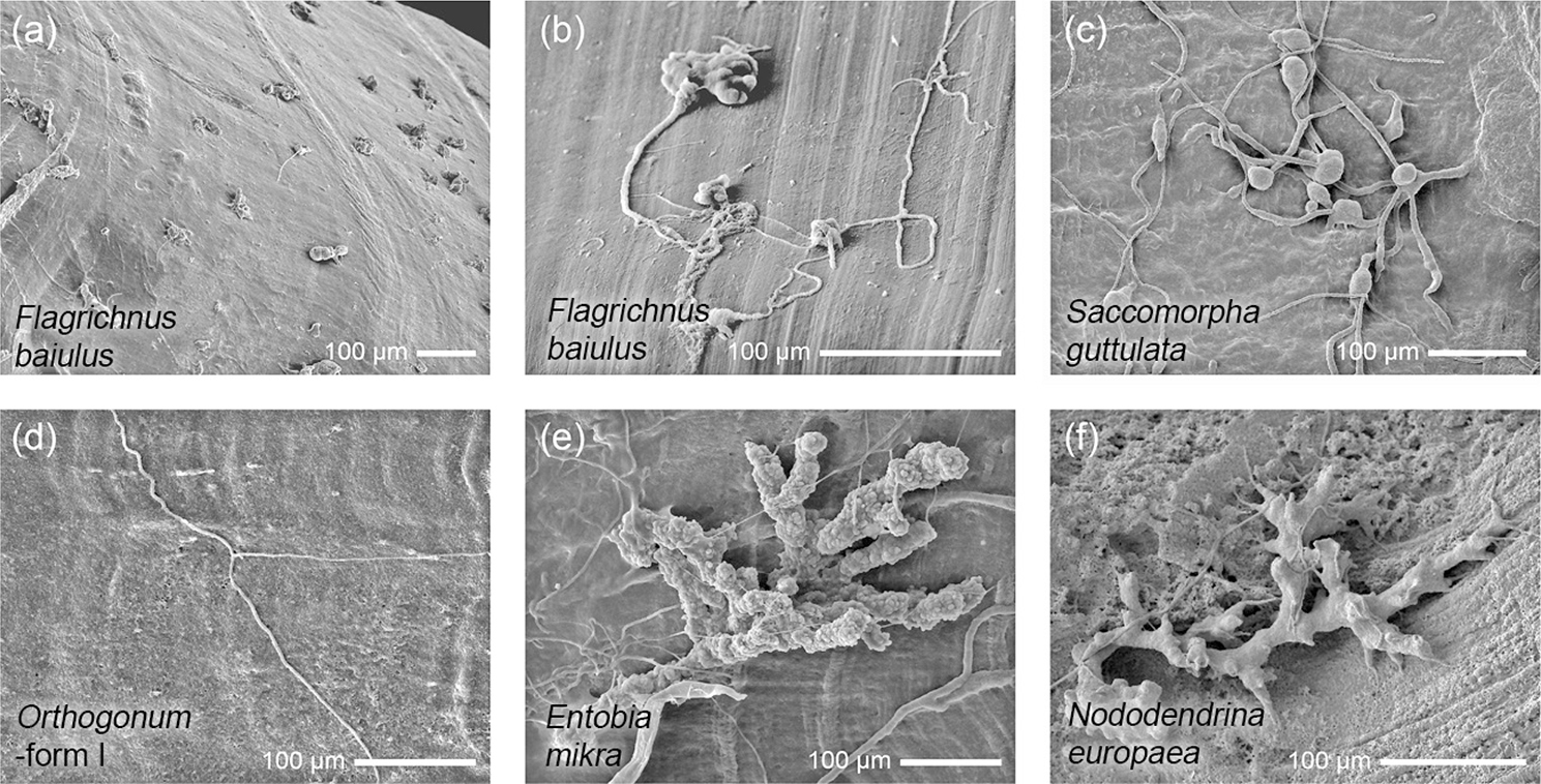 Wisshak M., Meyer N., Radtke G. & Golubic S. 2018. Saccomorpha guttulata: a new marine fungal microbioerosion trace fossil from cool- to cold-water settings. PalZ 92, 525–533, doi: 10.1007/s12542-018-0407-7.